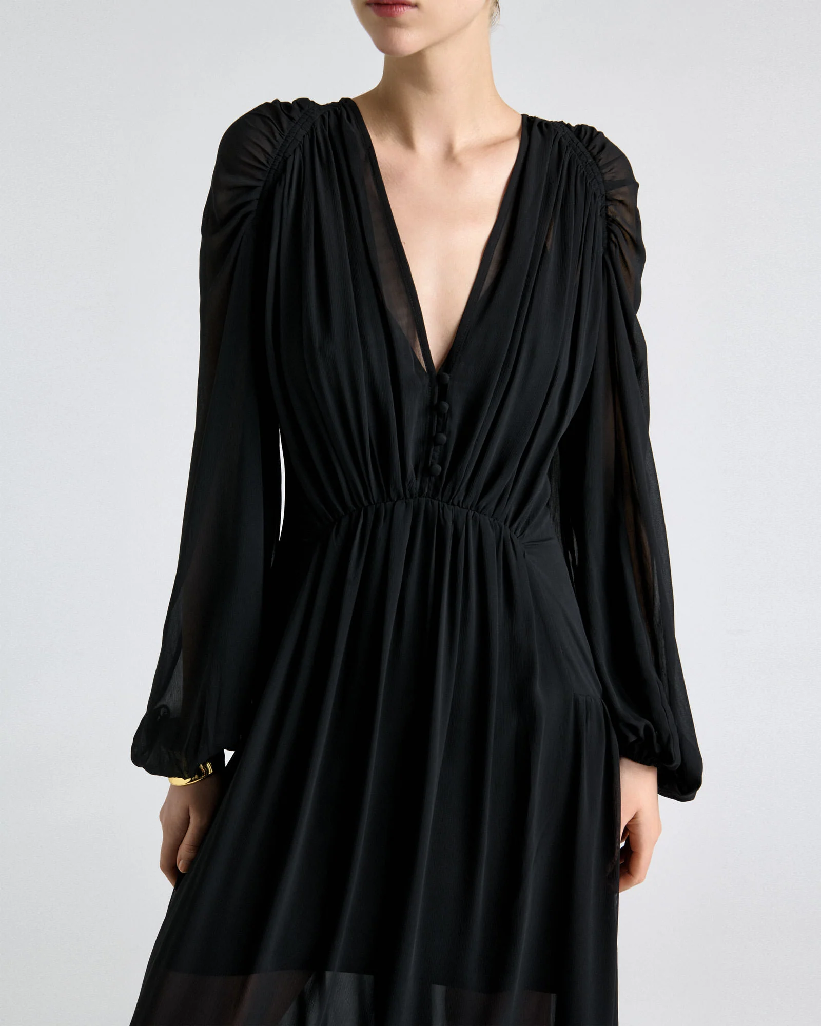 -70%Georgette Gathered Midi Raglan Sleeve Dress—