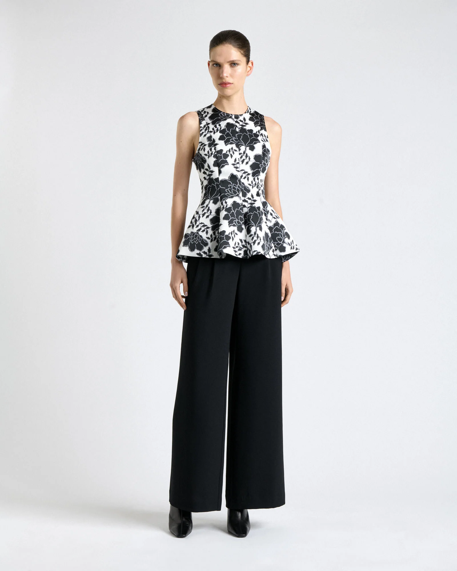 Graphic Floral Satin Peplum Top